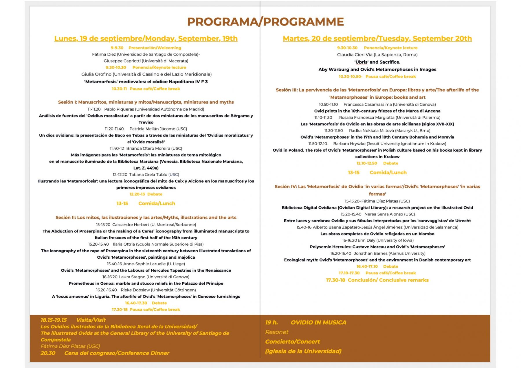 W dniach 19-20 września 2022 w Universidad de Santiago de Compostela odbyła się międzynarodowa konferencja naukowa "Ovidius Pictus. The Fortune of Metamorphoses in Europe from Books to Arts".